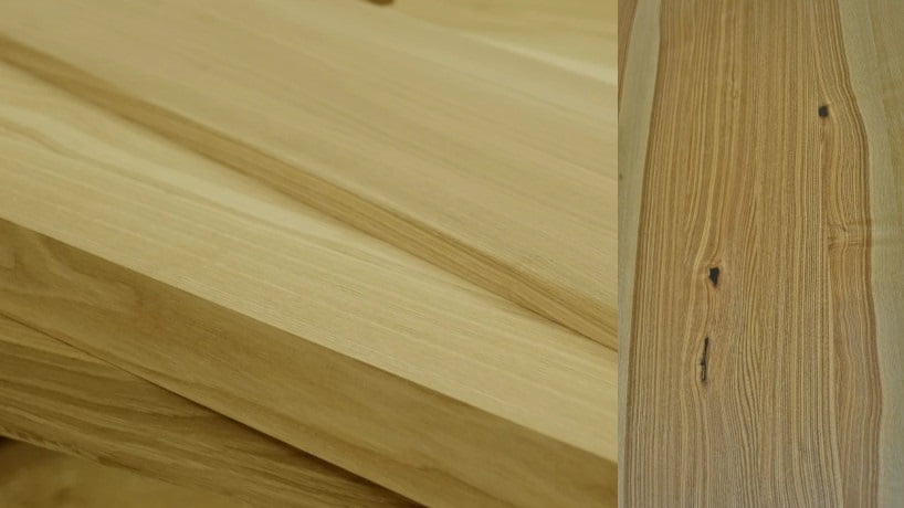 Jesion – Jesion przybiera bardzo kontrastowe barwy od bardzo jasnych do bardzo ciemnych, podczas klejenia lamele są układane tak aby uzyskać efekt podobny do monolitu lub blatu zrobionego z dwóch szerokich desek.